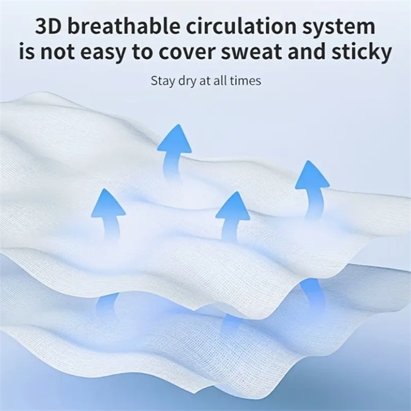 The 3D breathable circulation system runs throughout the pillow's internal structure — not just on the surface. Air and moisture move through the fill continuously, preventing heat and sweat from building up inside the pillow. The result is a sleeping surface that stays dry and cool at all times, even during extended contact on warm nights.